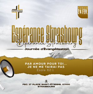 Les événement Espérance ont vu le jour en 2023. Ils regroupent plusieurs évangélistes, églises de Strasbourg et alentour, qui ont un cœur brûlant de voir une armée se lever pour annoncer l’évangile et voir un réveil en France.